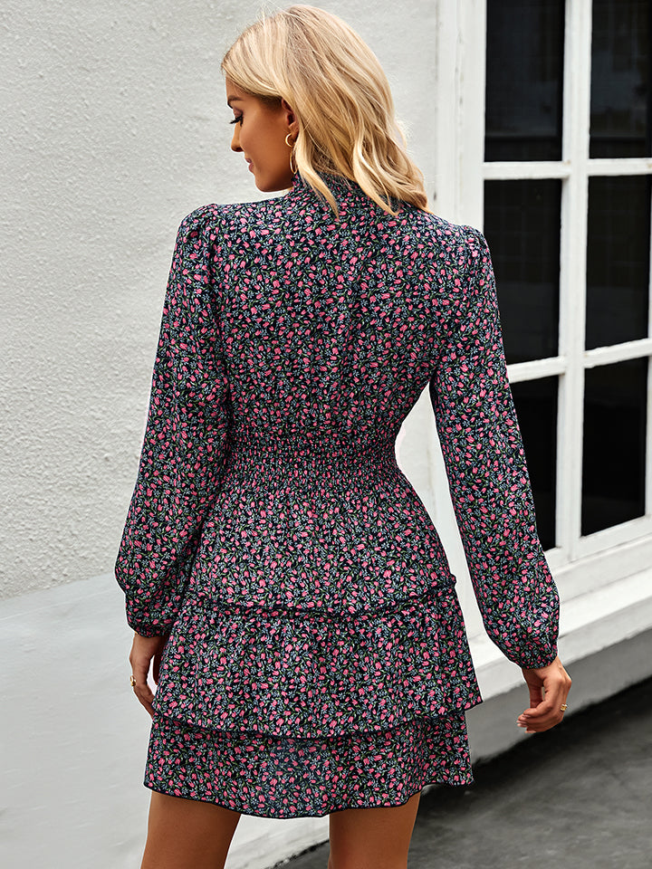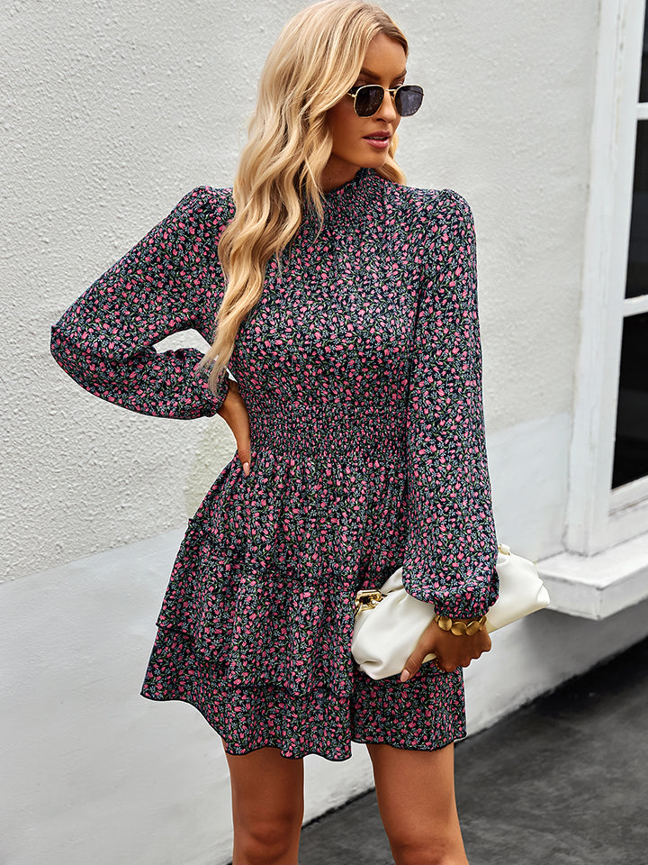 Floral Ruffle Collar Smocked Waist Layered Dress