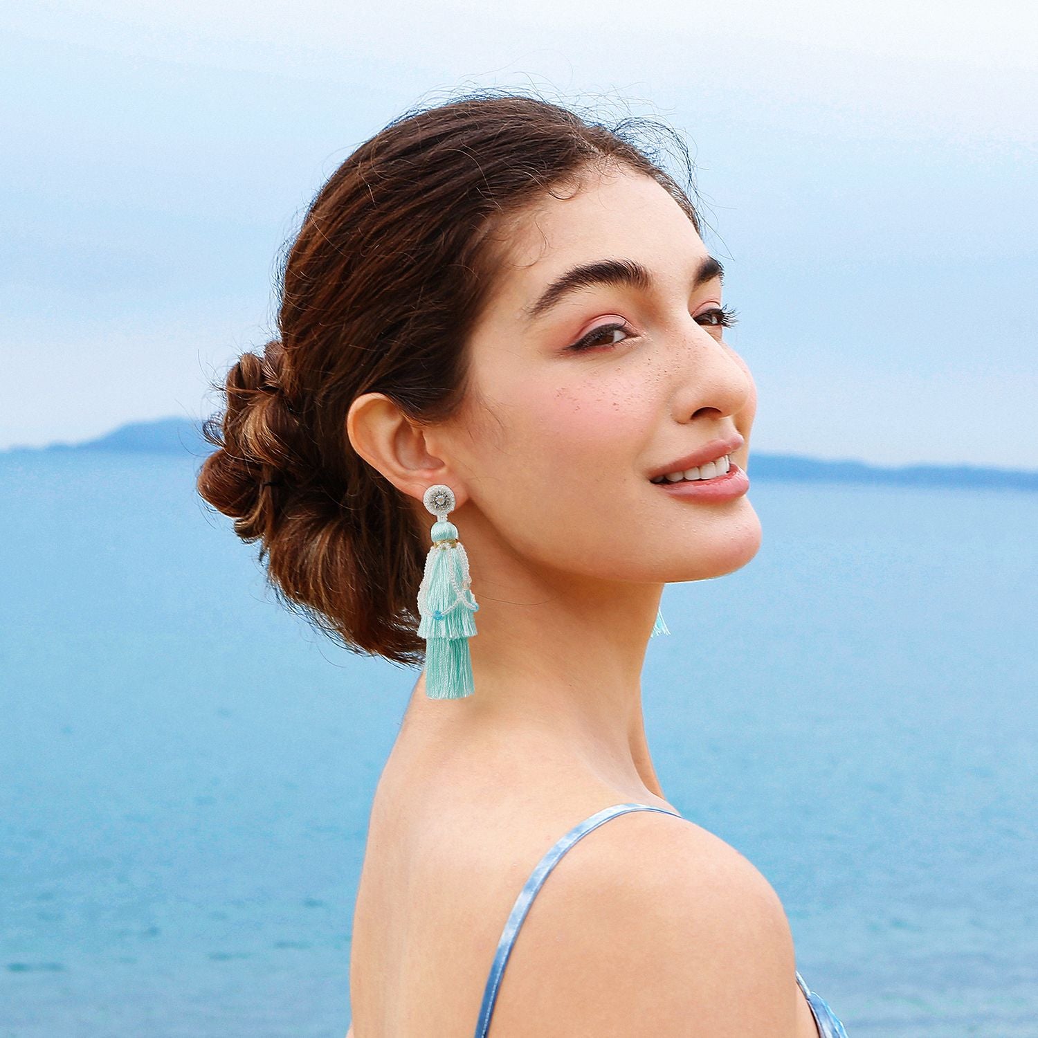 - Material: Glass, Copper, Cotton cord, Rice beads